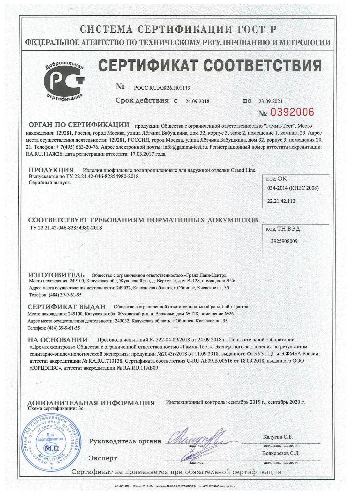 Подтвержденное сертификатами и действующими ГОСТ
