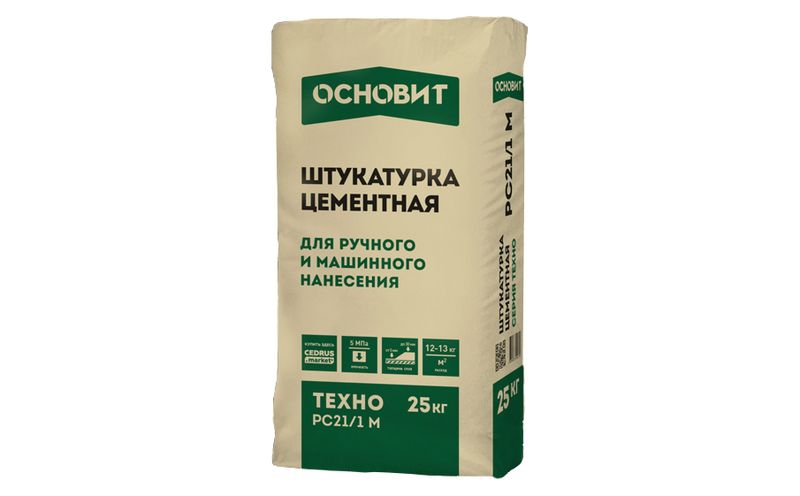 Штукатурка цементная ОСНОВИТ ТЕХНО PC21/1 M, 25 кг